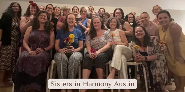 Sisters in Harmony Austin is a community of women who come together to explore singing as a resource for living fully. We practice freeing our voices as we learn lyrics, harmonies, layers, and parts. As we deepen our relationships with the songs, so too do our heart connections deepen with one another. Together we become a communal support system where we explore joy, grief, gratitude, sisterhood, authentic expression, and more through vocal expression and song.